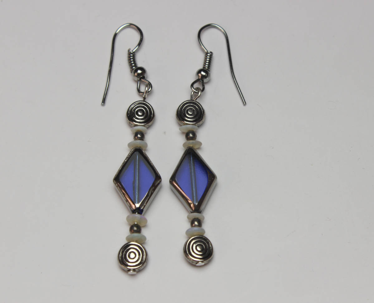 - プエブロ インディアン ハンドメイド シルバー ピアス【新品 未使用】菱形 ブルー クリスタル ガラス スパイラル 渦巻 アクセサリー USA