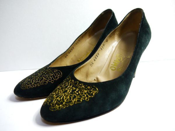 > サルヴァトーレ・フェラガモ パンプス 黒 スエード 6C 23.5cm R732-70