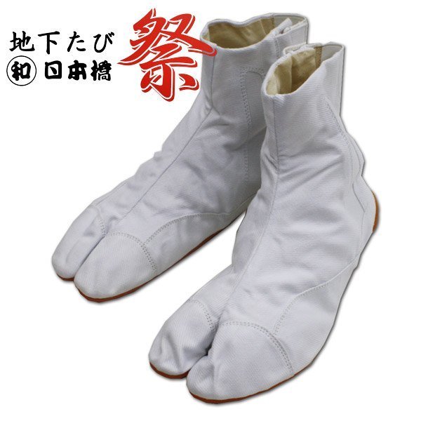 - 和日本橋 祭用地下足袋 ショートタイプ 白生地 24.5cm 竹匠 ファスナータイプクッション入り ホワイト ストレッチ まるわ 大人用