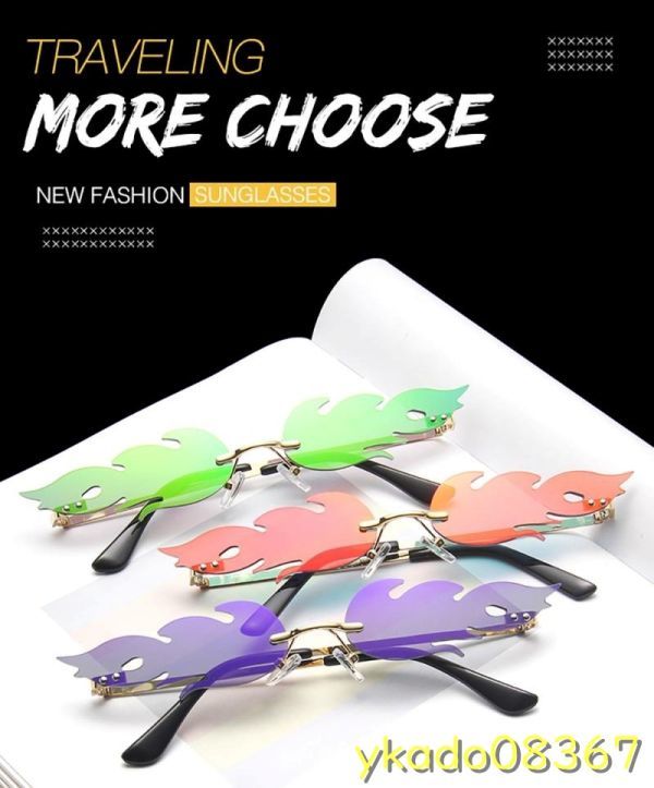 - P2372: 炎の形をした女性用サングラス フレームのない波のデザイン 高級ブランド サイクリングアクセサリー