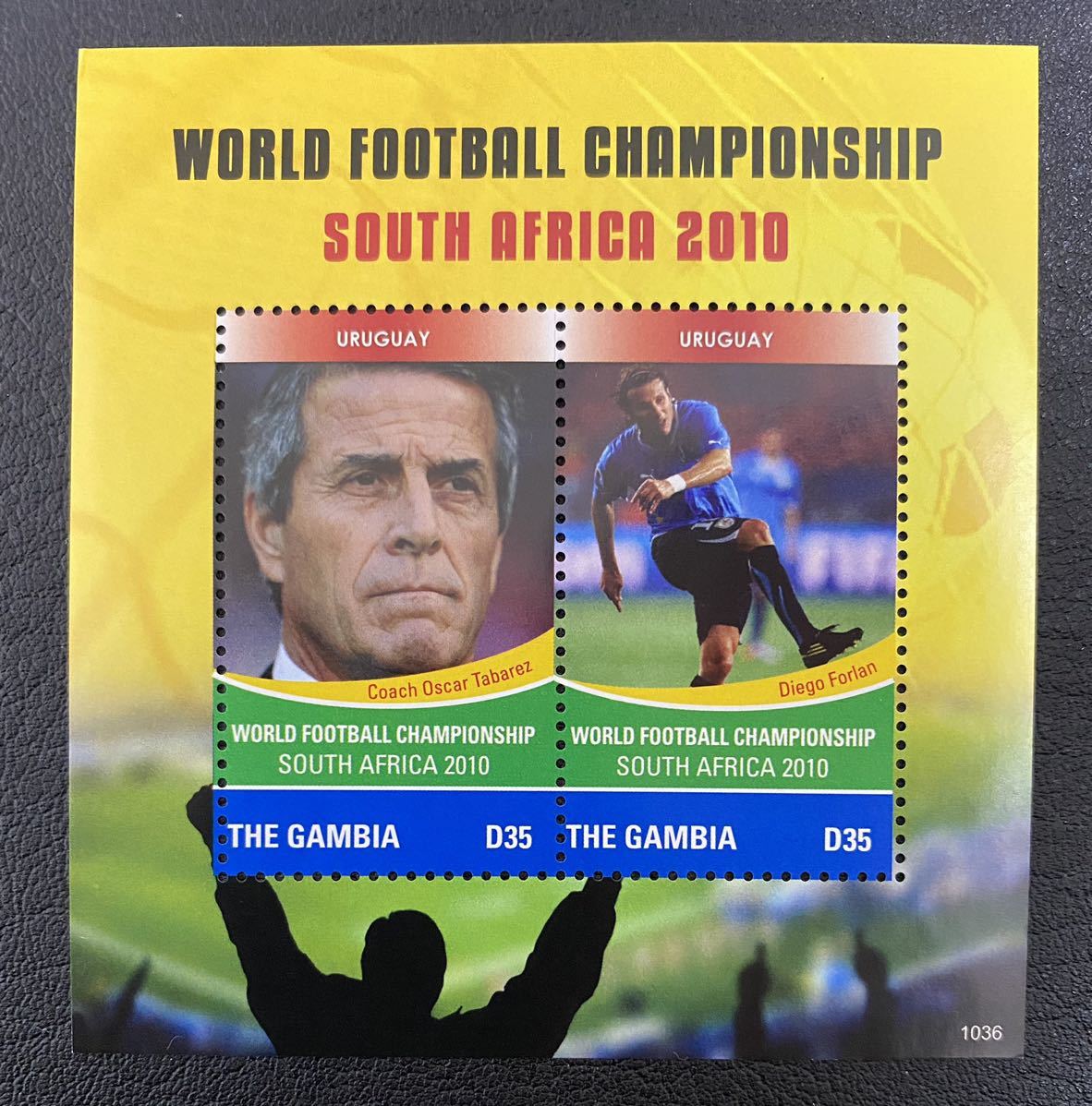 - ガンビア サッカーワールドカップ 南アフリカ大会 ウルグアイ フォルラン タバレス監督 小型シート1種完 未使用 NH