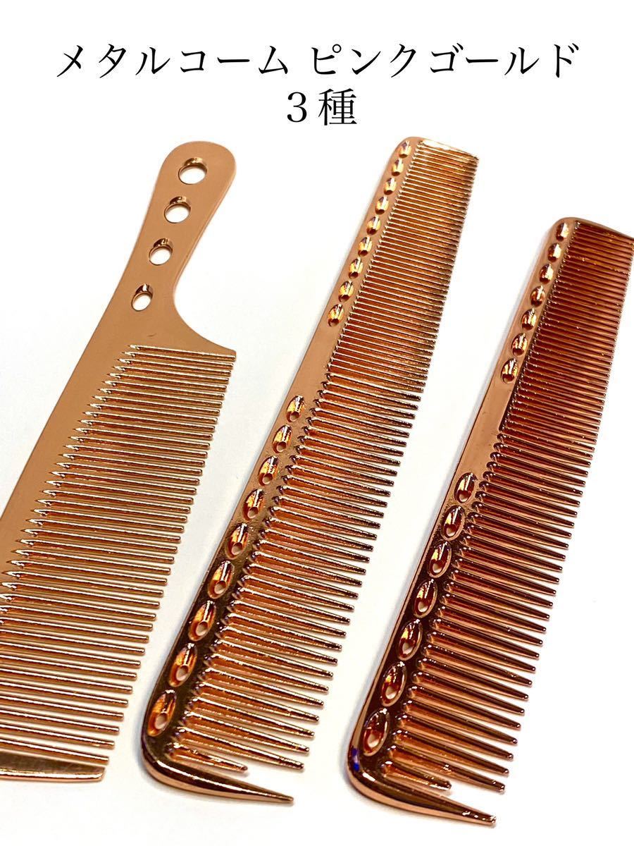 - メタルコーム ピンクゴールド 3種セット カットコーム 櫛 クシ 理容 美容 くし