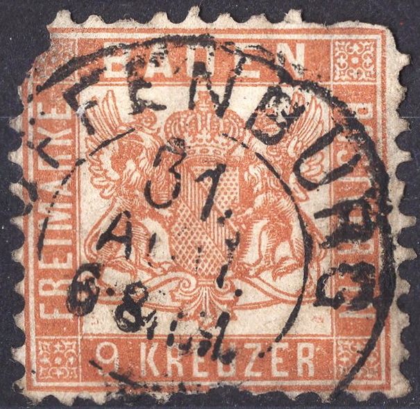 - ★1864年 ドイツ-バーデン 9kr-(SC#23)(SC$30.-)★ZO-429