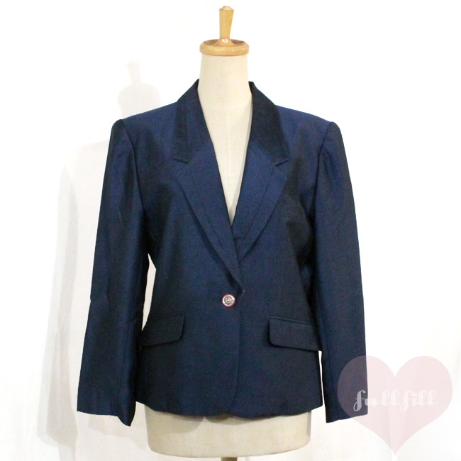 - ジャケット 古着 ネイビー 昭和 レトロ ソラーロ 玉虫色 ヴィンテージ ビンテージ vintage 70s おしゃれ 11号 レディース古着 used