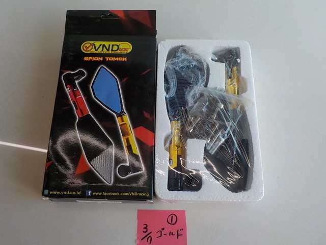 B品特価!●〇★1点のみ!バイク用汎用アルミバックミラー? ゴールド 4-3/7