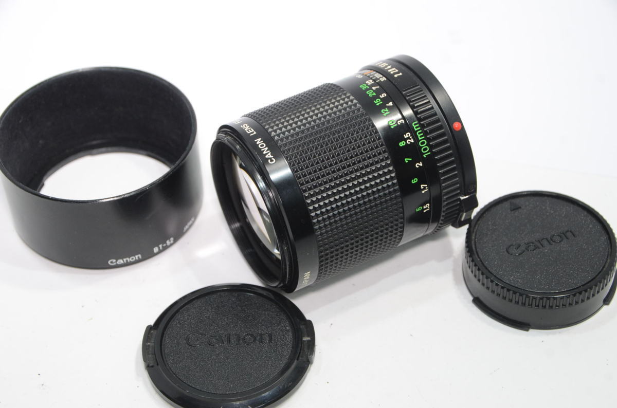 - 【 中古レンズ 純正フード付 】Canon NEW FD 100mm F2 キヤノン 単焦点レンズ [管QS659