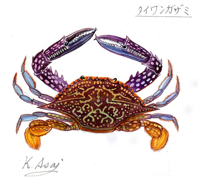 - 水彩画 生物細密画「タイワンガザミ」 真作