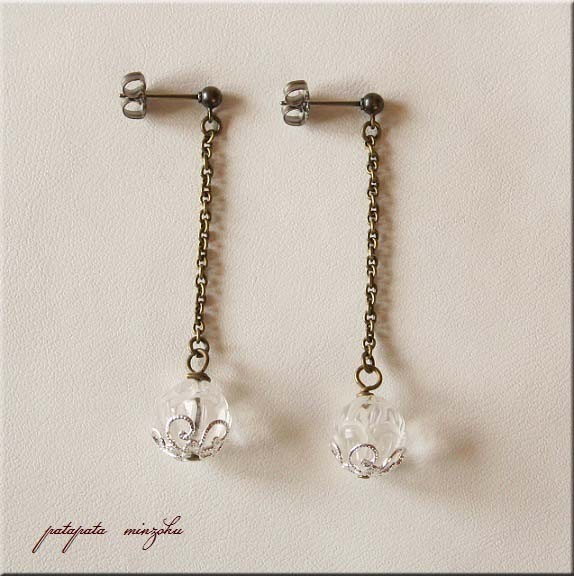 - 蓮 の クリスタル ひとつぶ ピアス 天然石 パワーストーン ハンドメイド