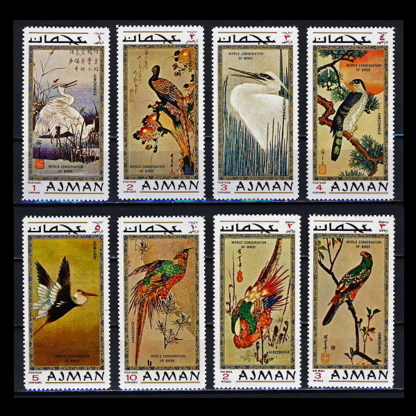- ■アジュマーン(アラブ首長国)切手 世界鳥類保護 / 歌川広重 8種完