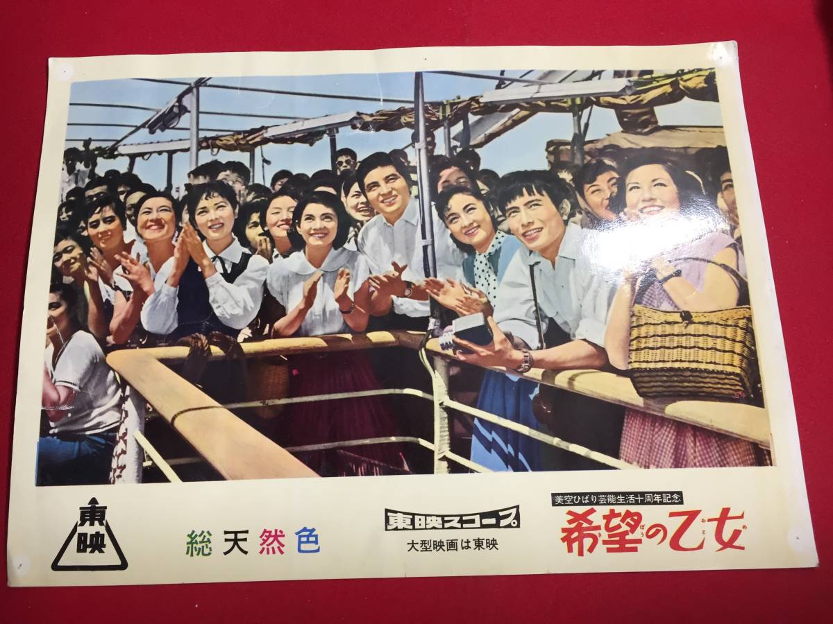 - 94716『希望の乙女』ロビーカード 美空ひばり 高倉健 小野透 小野満 柳家金語楼 岸井明