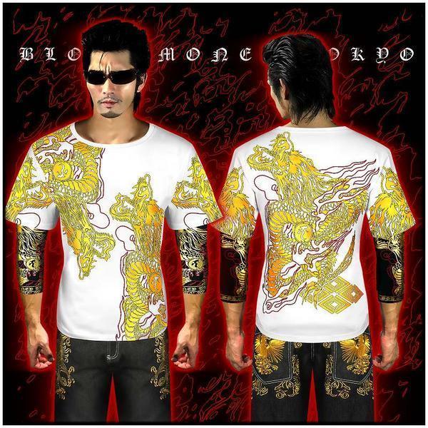 - 半袖 Tシャツ 夏物 ヤクザ オラオラ系 ヤンキー チンピラ メンズ 派手 ファッション 和柄 チョイワル 服 部屋着 快適 昇龍 14001 白 金