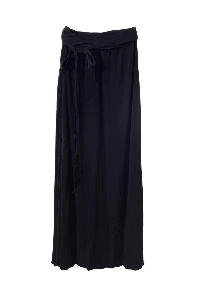 - 美品 LANVIN ベルト付 レーヨン ロングスカート 38 ブラック ランバン KL4QAQKC95