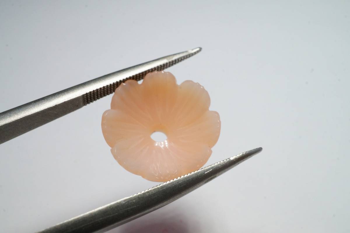 > 【限定即決価格!高級宝飾品用高品質ルース】希少!30年前の未使用在庫!早い者勝ち!天然ピンク珊瑚(サンゴ)彫刻「花」3.26ct/0.65g