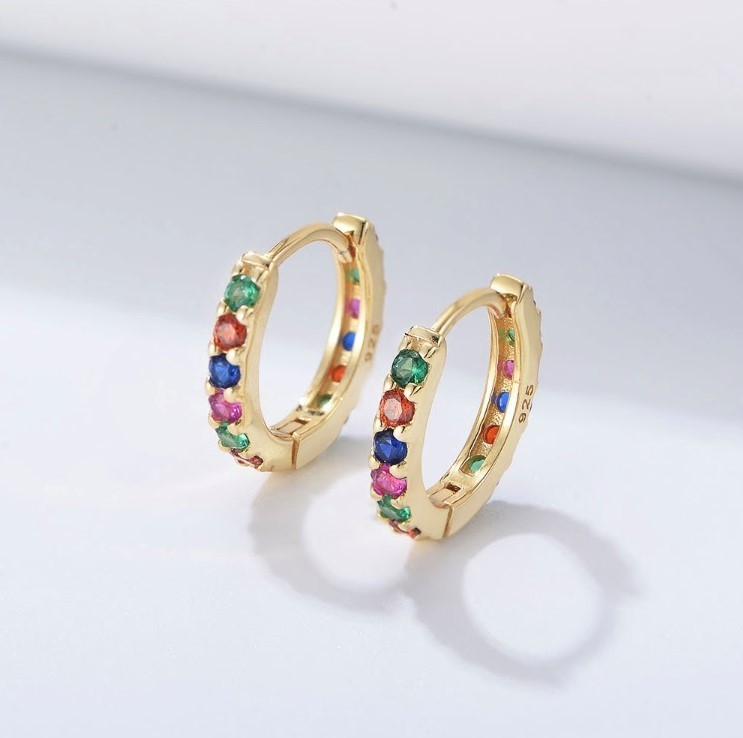 > ミックスカラーストーン マルチカラーストーン 中折れ式 キュービックジルコニ ア リン グ ピアス