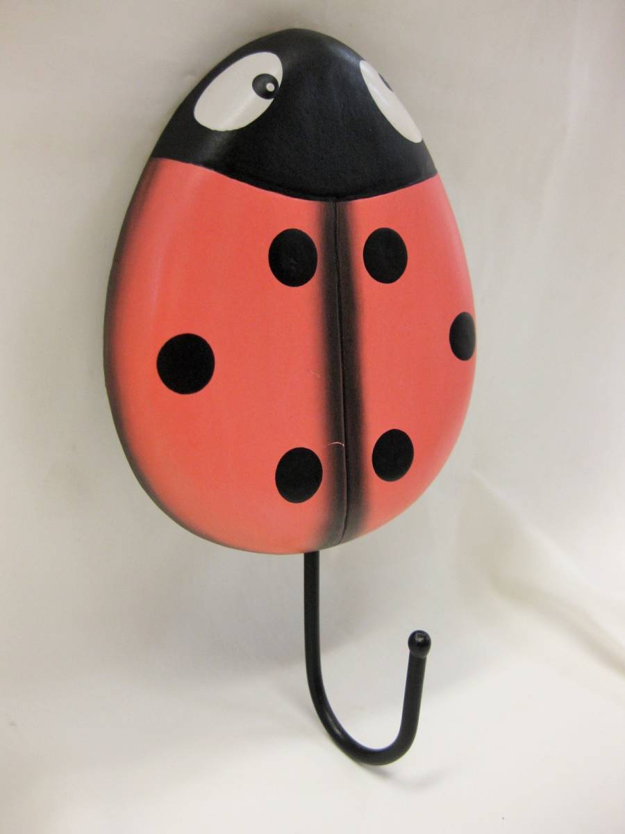 - 回 木製 壁掛け フック てんとう虫 モチーフ 当時物 / インテリア 飾り オブジェ ディスプレイ にも