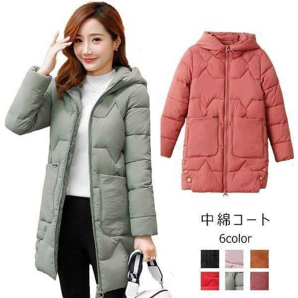 - 中綿コート レディース ロング丈 ジャケット フード付き ファスナー アウター 無地 長袖 カジュアル 秋 冬 春 秋冬