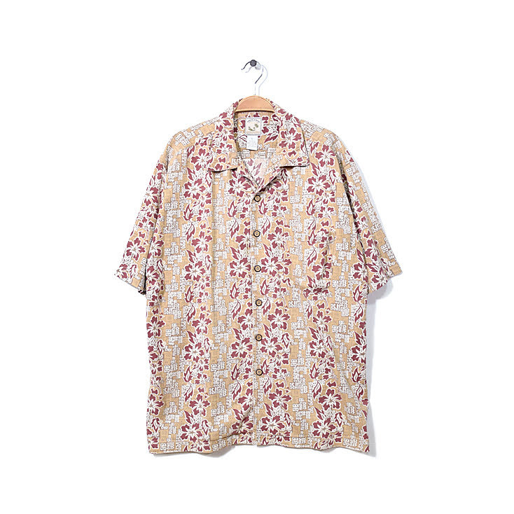 > 【送料無料】COLO WEAR AMERICA コットン/レーヨン アロハシャツ ハワイアンシャツ メンズL 総柄 アメカジ 古着 ヴィンテージ CB0757