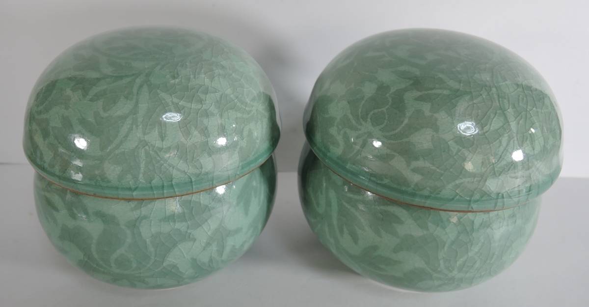 - ☆H05■青磁 途岩 湯飲み/湯呑み 茶漉し/蓋付き 2客■茶こし/フタ付き 未使用