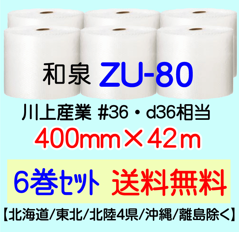 - 〔和泉直送 6巻set 送料無料〕ZU80 400mm×42m エアパッキン エアキャップ エアセルマット 気泡緩衝材