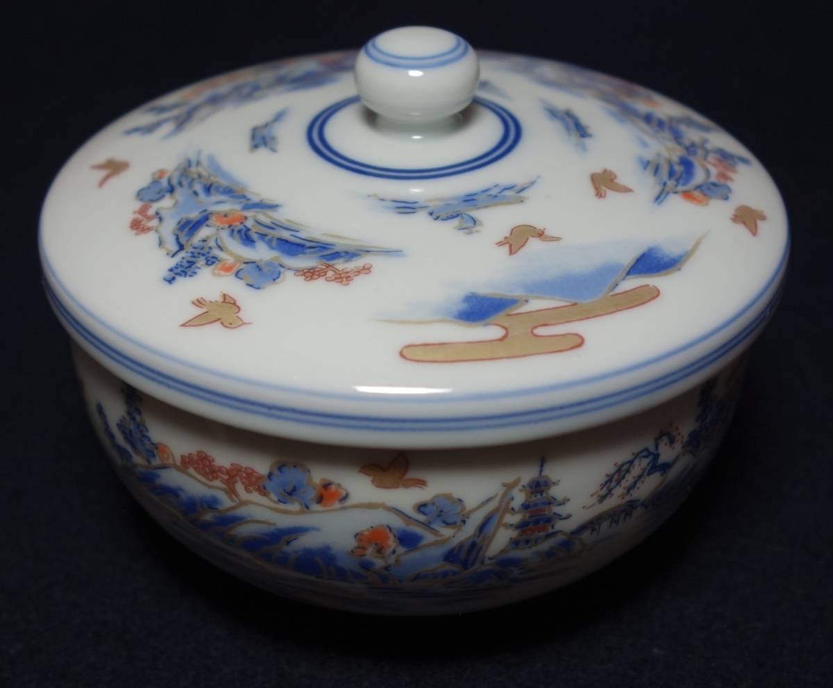 - 倣清朝官窯高級茶器 唐山水図 染付金釉縁 蓋つき 煎茶器 陶磁器研究
