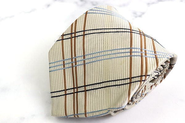 - 498円~ダナキャラン チェック柄 日本製 ブランド ネクタイ メンズ アイボリー グレー 良品