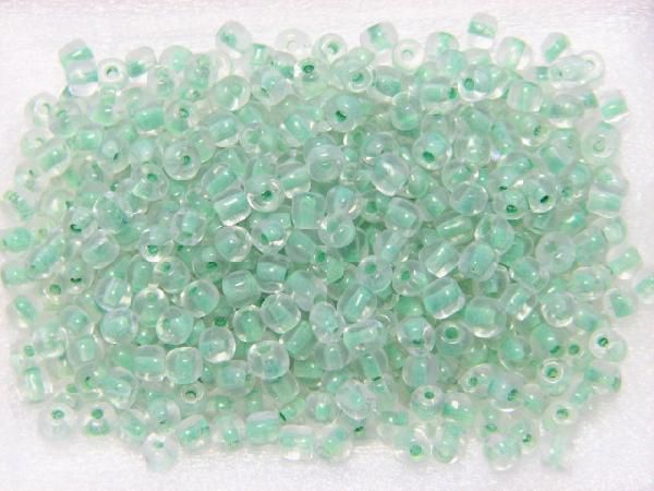 - ガラスビーズ マル(M) 3x4mm インサイド ライトグリーン 約50個