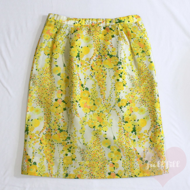 > スカート 古着 昭和 レトロ 花柄 黄色 タイトスカート 70s ビンテージ ヴィンテージ vintage used ポップ カラフル イエロー