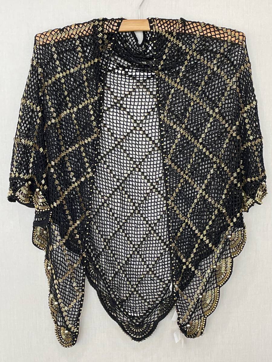 - ★【ストール/ショール】東京ソワール 金/ゴールドビーズ 編み込み 三角ショール EP-A04 松坂屋購入品 ¥18000円★未使用品