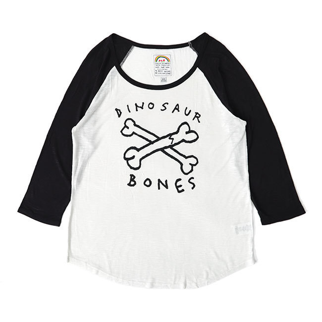 > 古着 VOLCOM ボルコム レーヨン イラストロゴ ラグランTシャツ B4311408 XL 白 黒 長袖Tシャツ レディース
