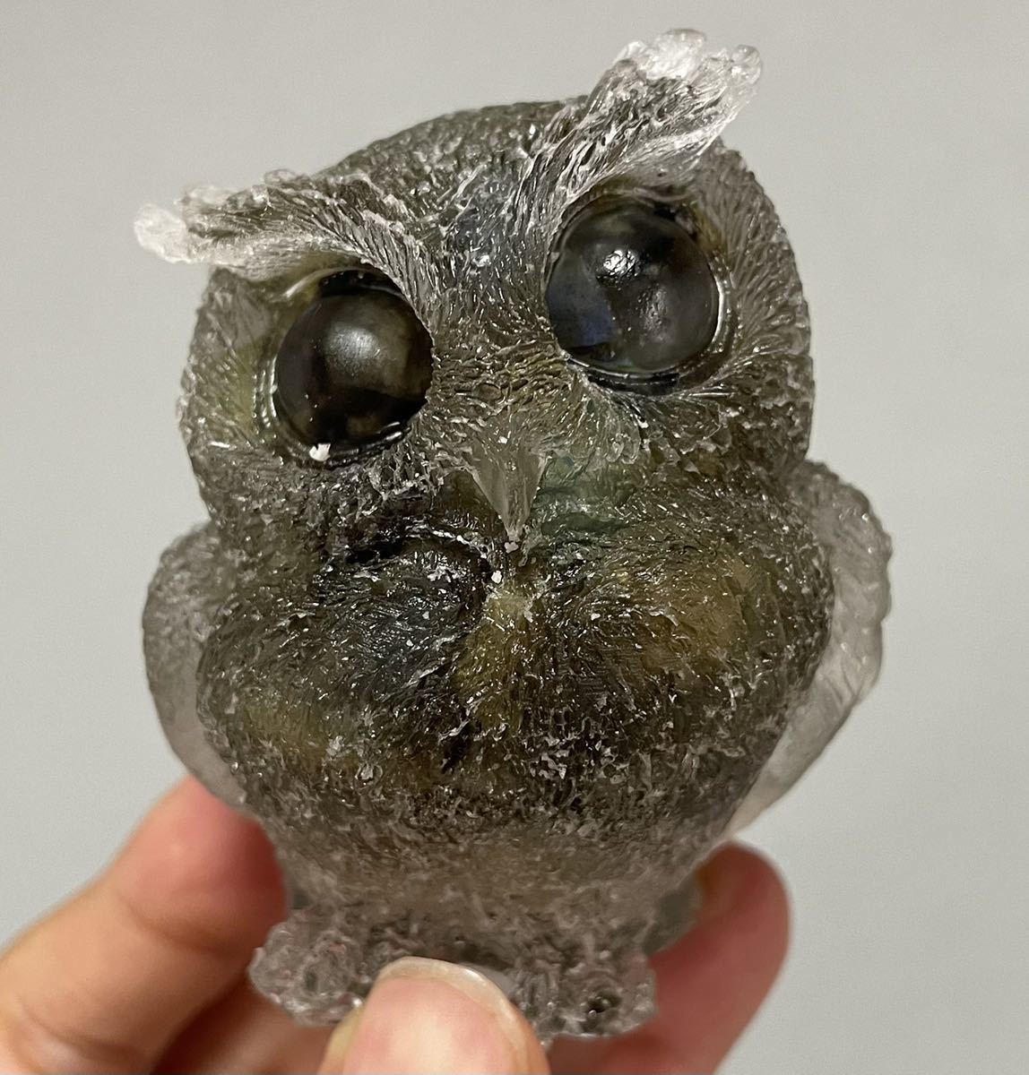- フクロウ オルゴナイト ラブラドライト 天然石 風水晶 置物インテリア 縁起物 不苦労 魔除 お守 パワーストーン 幸運 開運 ラッキー