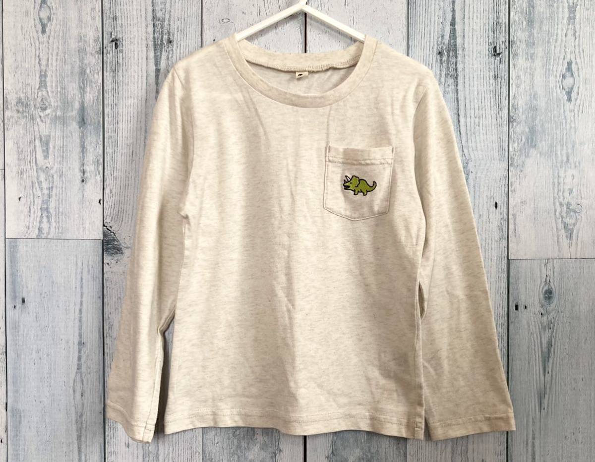> キッズ 西松屋 長袖Tシャツ 恐竜ワンポイント 生成り 120