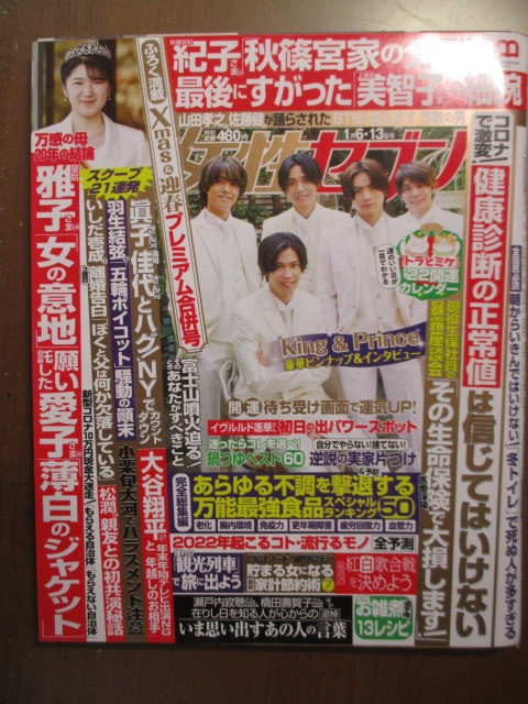 - 女性セブン 2022年1/6 King&Prince 雅子さま女の意地 5人のプリンセスドレス姿 紀子さま秋篠宮家の分裂 生命保険で大損