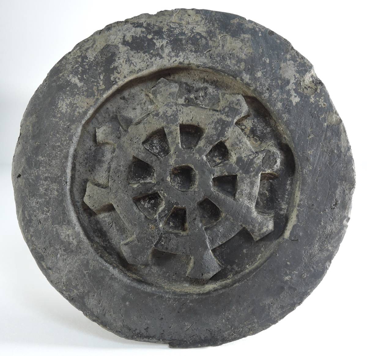 - ☆001■室町時代 輪宝紋/八剣輪宝 軒瓦/丸瓦 木箱付■西光寺/香川県善通寺市吉田町