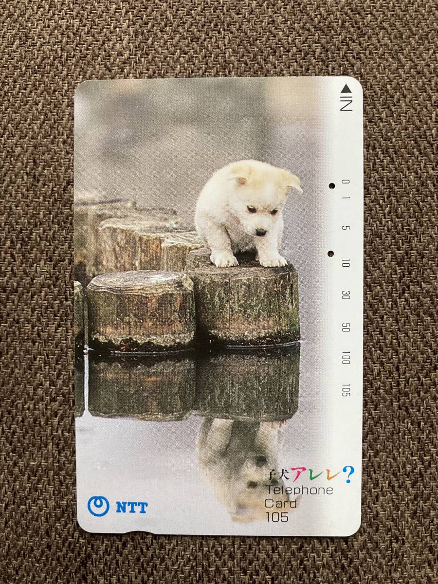 - ★使用済み テレホンカード 子犬 アレレ? 水面に映る 白い犬 いぬ 動物 テレカ 1枚 佐賀県 佐賀支店 105度数 NTT ミニレター