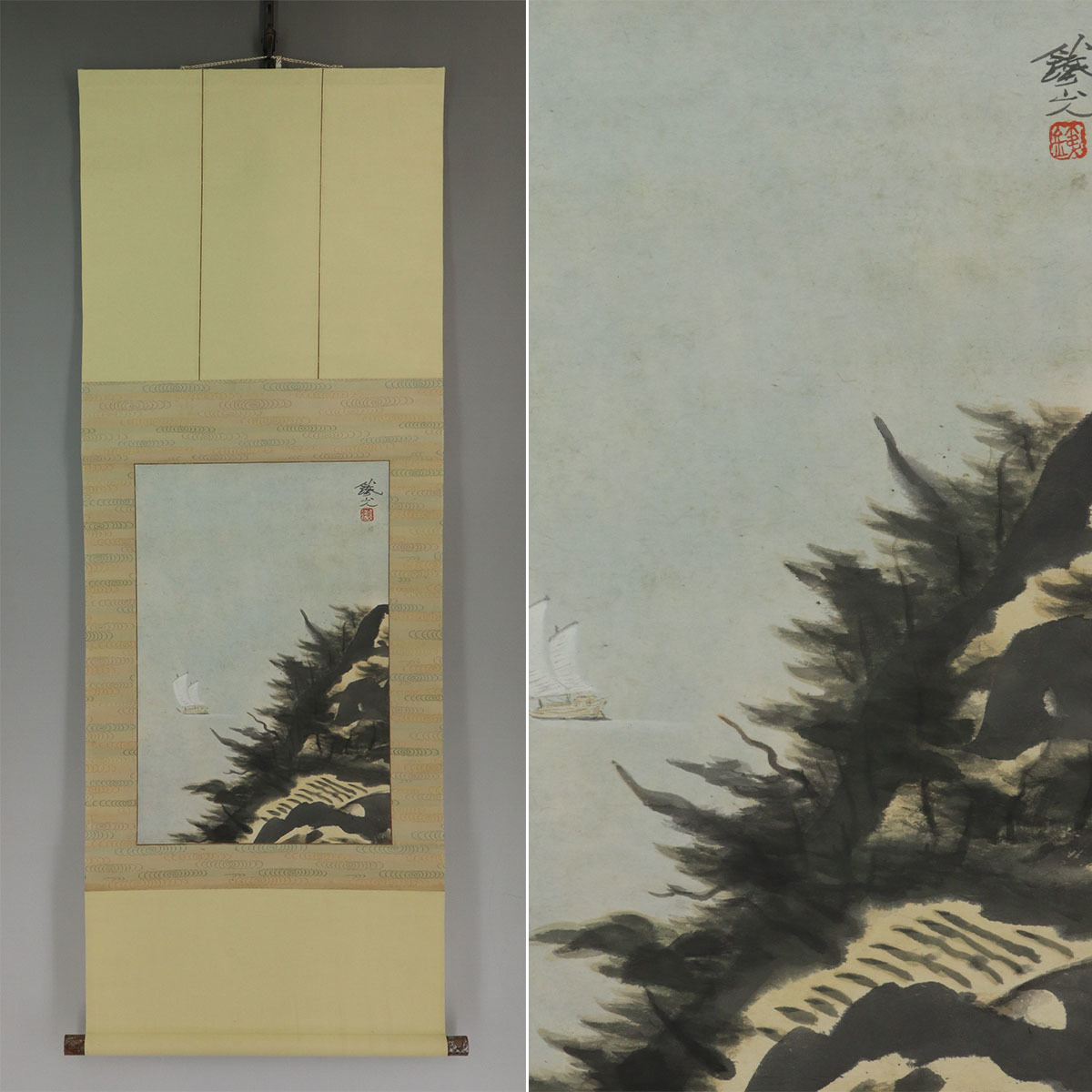 - 【真作】矢野鉄山【蓬菜仙境】◆紙本◆合箱◆掛軸 u04135