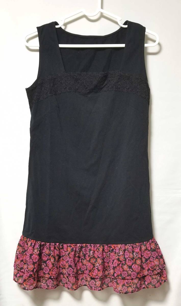- 新品同様 NERO チュニック タンクトップ フリル ブラック ピンク 花柄 38 トップス レディース