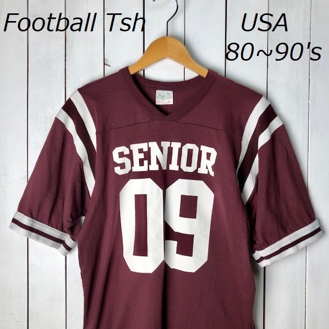 > T●278 USA古着 80s~90s USA製 切替フートボールTシャツ M ブラウン オールド ヴィンテージ アメリカ古着 ゲームシャツ カレッジ