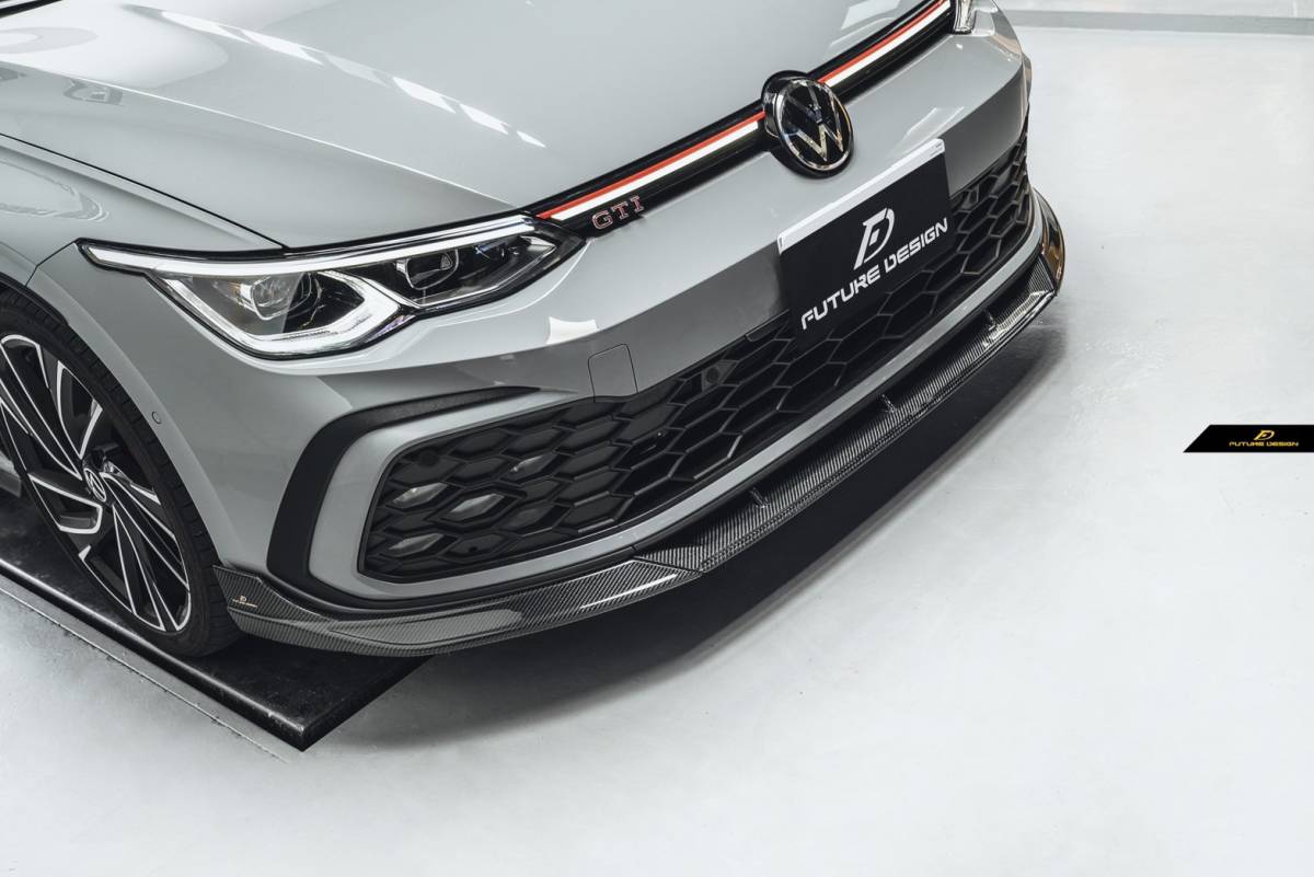 - 【FUTURE DESIGN】VW フォルクスワーゲン GOLF ゴルフ 8 GTI Mk8 フロントリップスポイラー 本物Drycarbon ドライカーボン エアロ カスタム