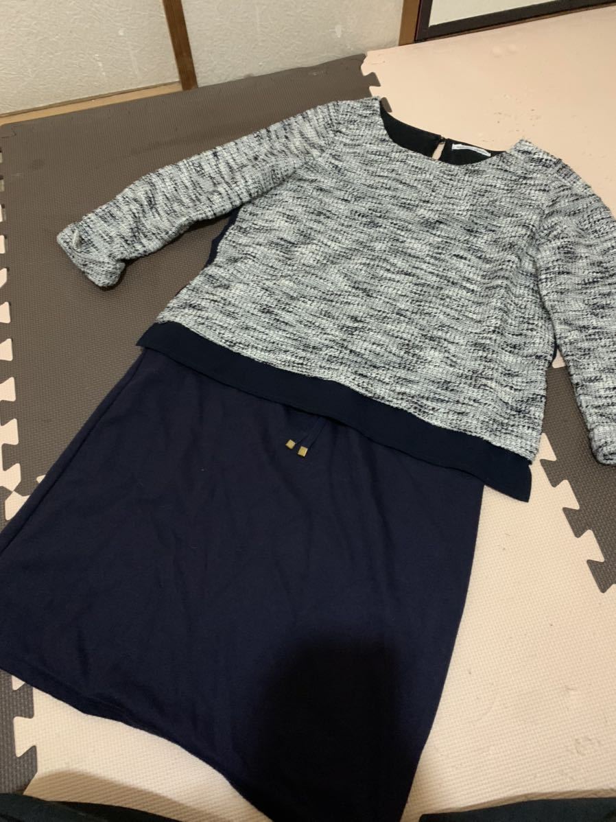 - N019/グレー×ネイビー/FREEサイズ/ワンピース/