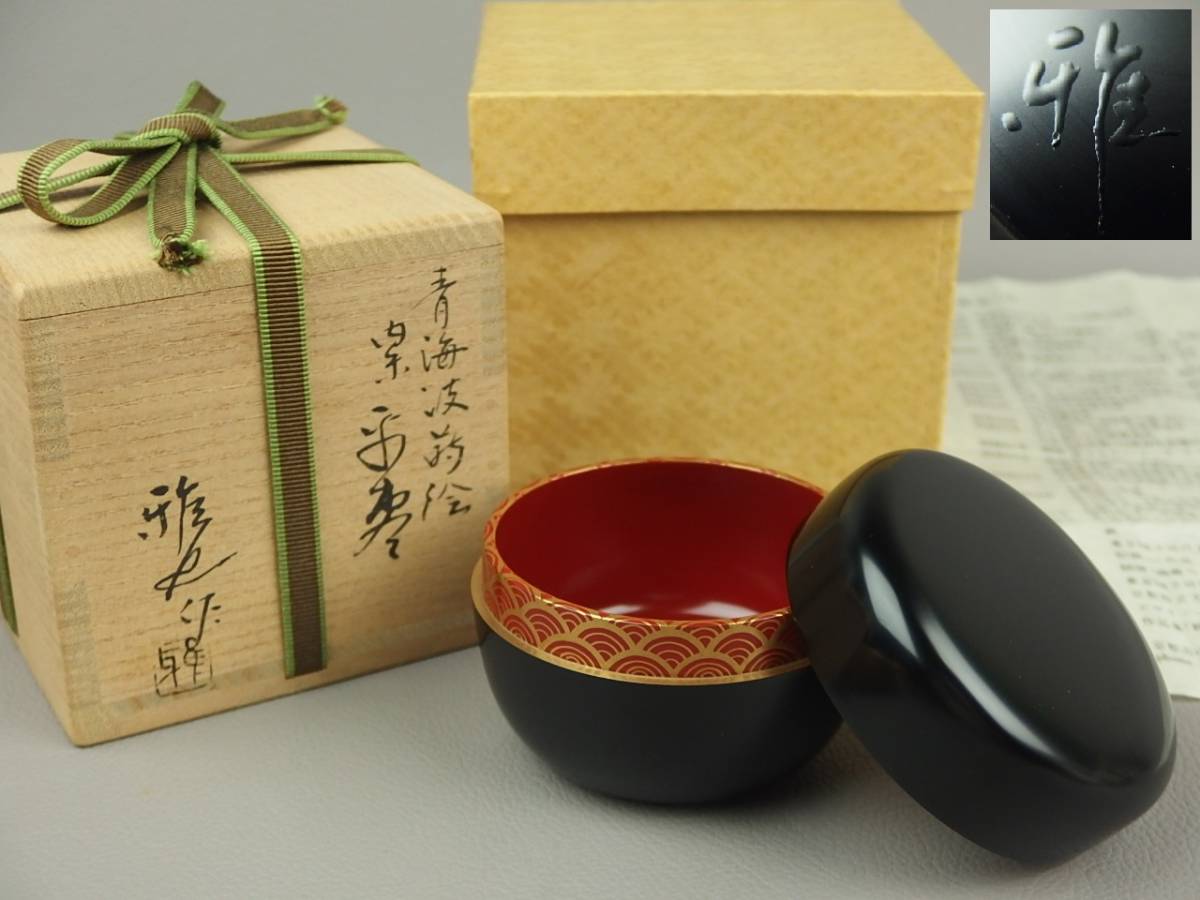 - 【骨董・茶道具】★鈴木雅也(三代表朔)★★青海波蒔絵内朱腹棗 dn363ygl.m.8