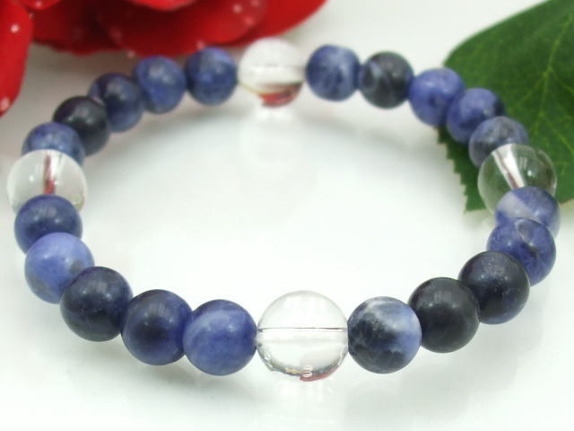 - ★☆★ ソーダライト&水晶 四天ブレスレット 新たな一歩を踏み出す勇気を与える♪ 人気の8ミリ おまけ付き 送料無料(a_r)b