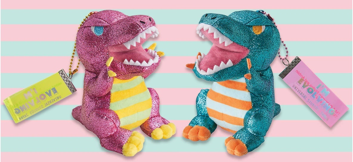 - 184◇ぬいぐるみキーチェーンセット ジュラシック・ワールド I’M EVOLVING ピンク グリーン 2点 USJ 2022 期間 限定 Jurassic World