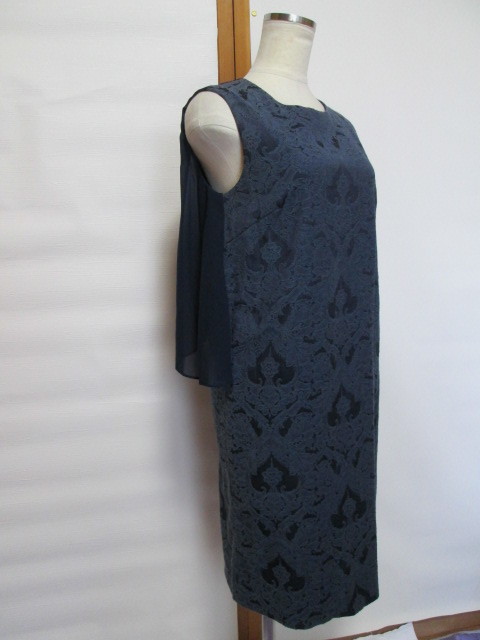 > ロペ*38*異素材ワンピース*フォーマルワンピース*ノースリーブワンピース*ネイビー*柄ワンピース*折り柄*オールシーズン*春夏秋冬