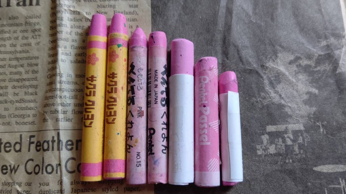 - 【 クレヨン・パステル 桃色 ピンク 中古 7本 ★ サクラ・ペンテル・フレーベル館 】