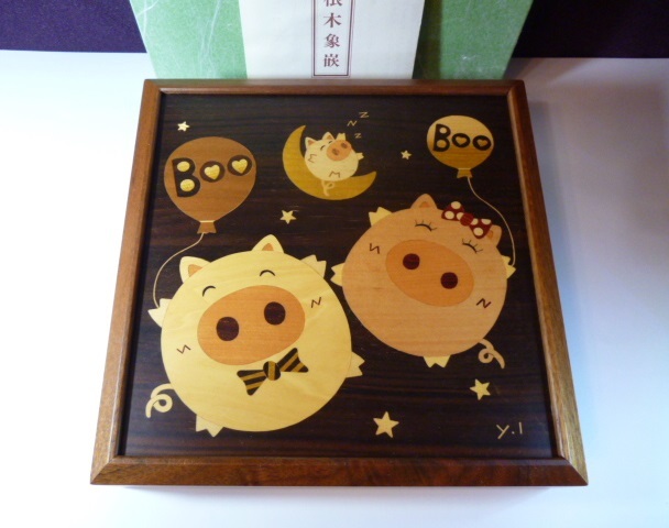 - ξ 箱根木象嵌 壁掛け キーボックス 箱根寄木細工 空飛ぶBoo ξ 浜松屋 壁飾り 寄木細工 箱 木 象嵌 寄木 キーケース 木象嵌