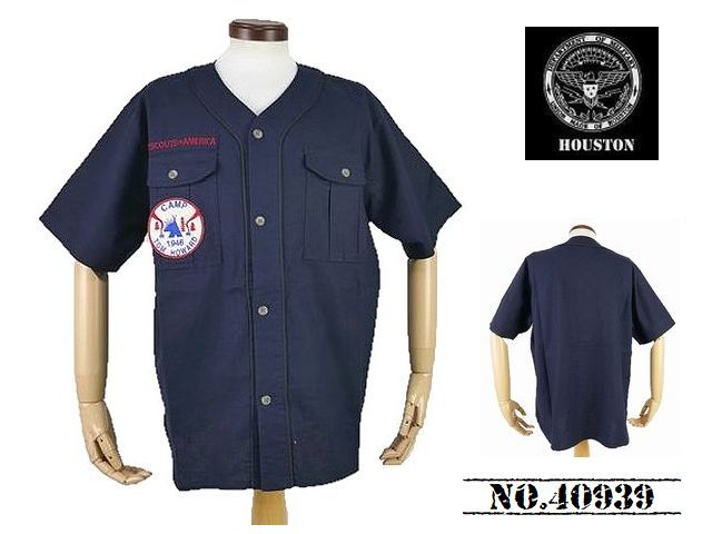 > 【送料無料 40%OFF】HOUSTON ヒューストン ワイド ボーイスカウトシャツ ベースボールシャツ NO.40939 NAVY_Lサイズ