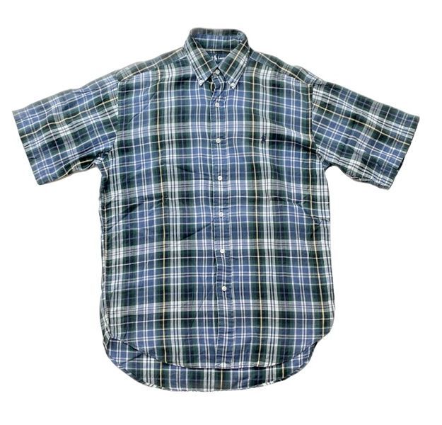 - 90's ラルフローレン Polo Ralph Lauren BLAKE コットンシャツ 半袖 ボタンダウン チェック ネイビー S [ta-0463]