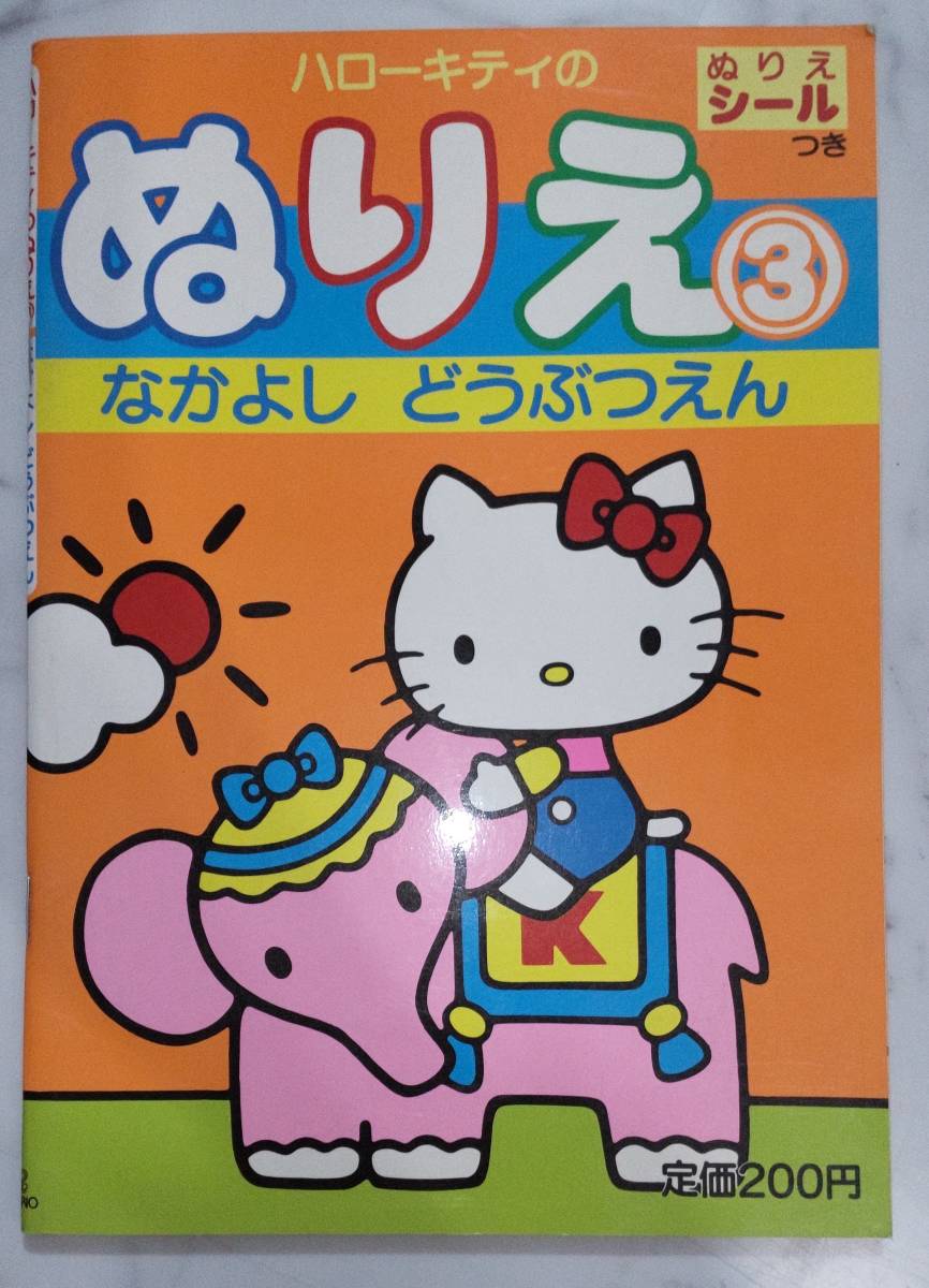 - 送料無料 未使用 レトロ 昭和62年 レア キティ ぬりえ③ なかよし どうぶつえん シール付 塗り絵 本 ハローキティ サンリオ 1987年