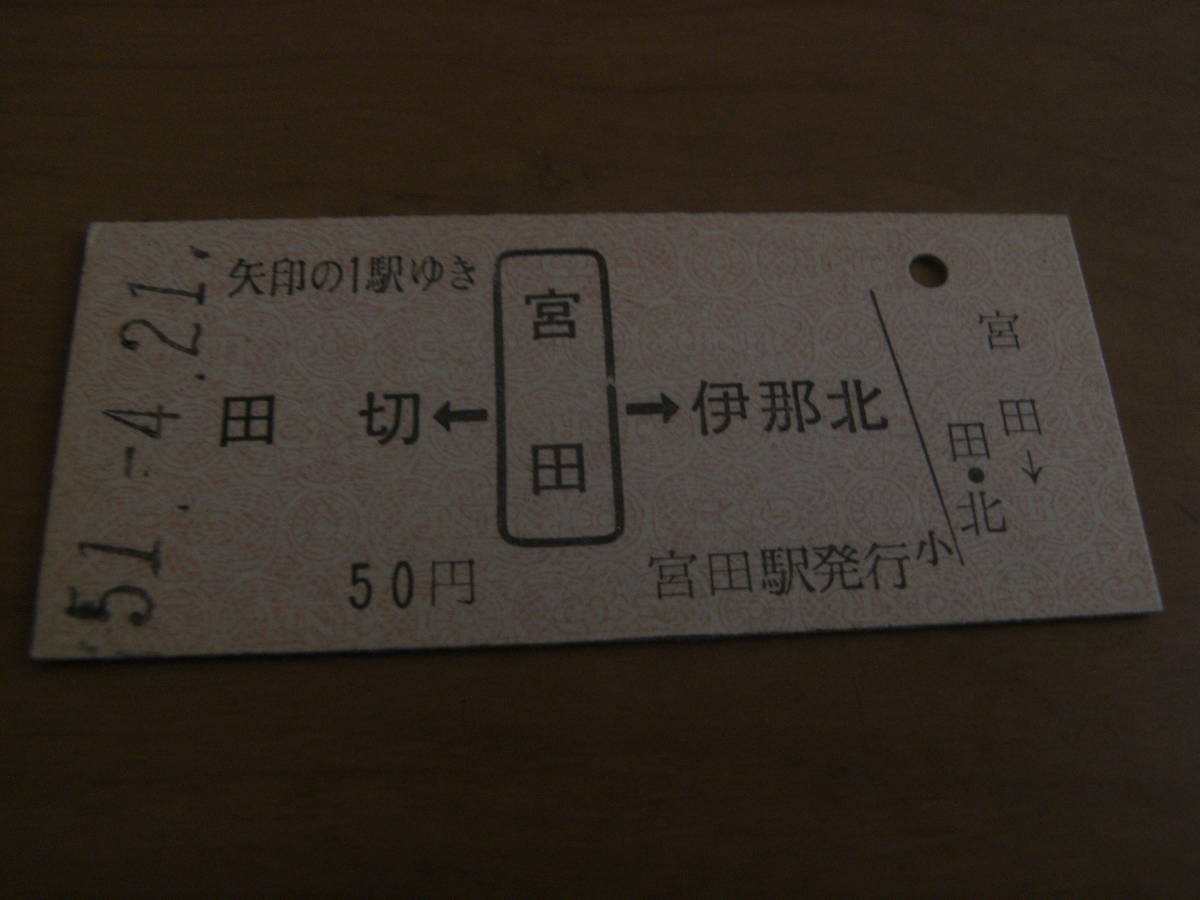 - 飯田線 田切←宮田→伊那北 50円 昭和51年4月21日 宮田駅発行