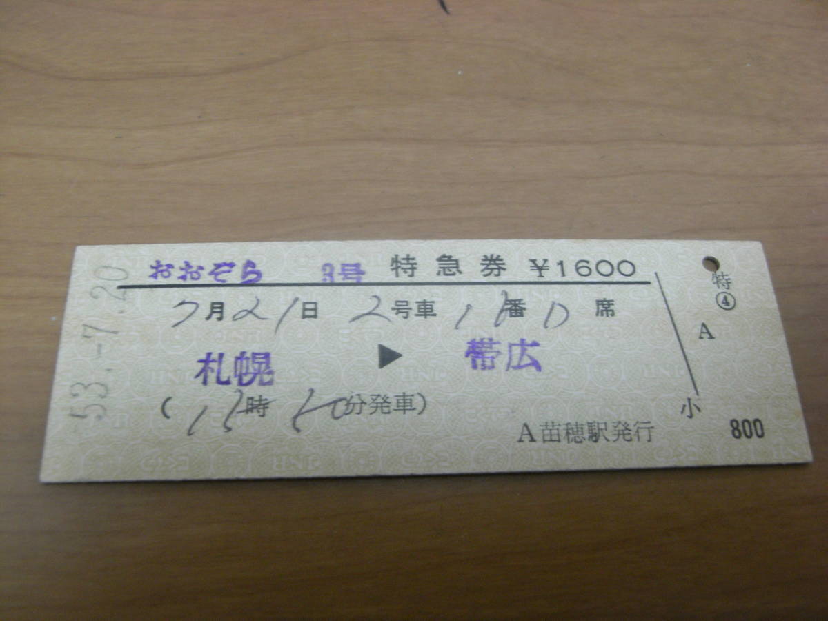 - おおぞら3号 特急券 札幌→帯広 昭和53年7月20日発行 苗穂駅発行